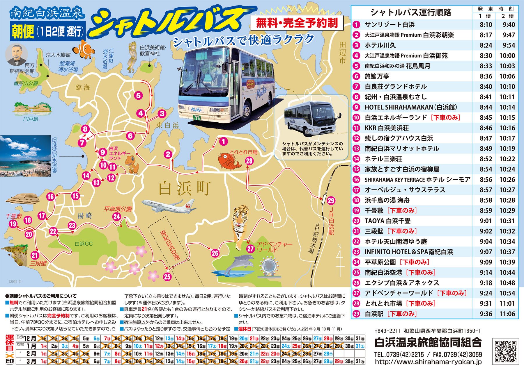 - ホーム南紀白浜温泉へのアクセス南紀白浜温泉シャトルバス【朝便】